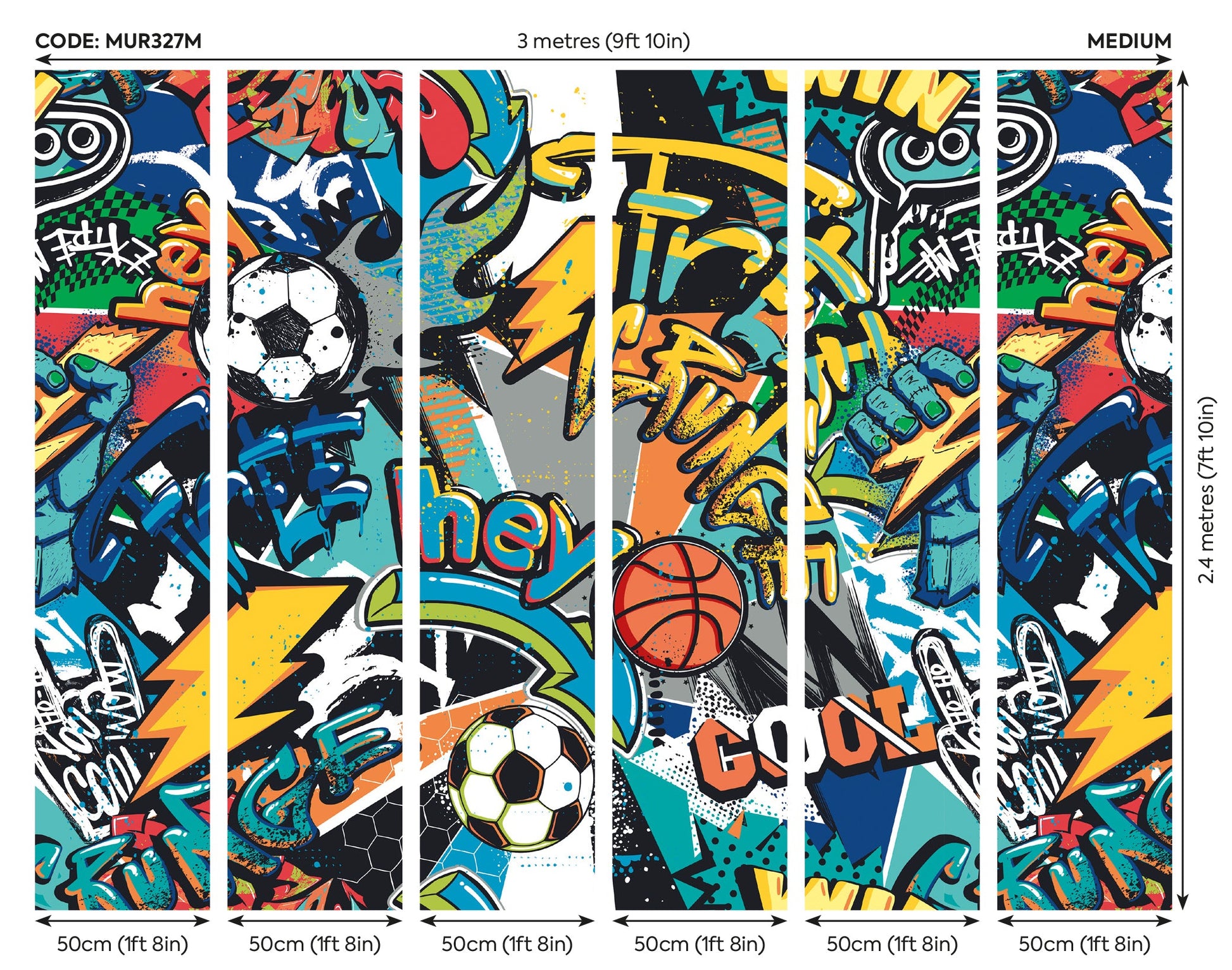 Choose the Origin Murals Sports Graffiti Blue 300cm X 240cm wallpaper to invigorate your décor with youthful energy and contemporary style. Let every wall tell a story, making a lasting impression with a feature piece that truly stands out.