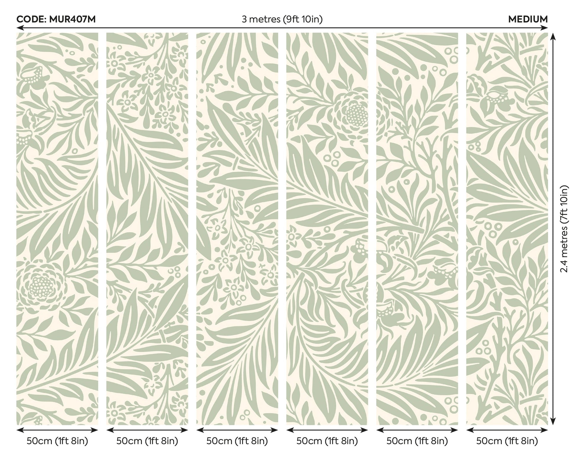 The Origin Murals Trailing Ferns Sage Green 300cm X 240cm wallpaper expertly balances beauty and subtlety. This medium-sized mural is ideal for those looking to introduce a touch of nature-inspired elegance without overwhelming their space. The muted two-coloured palette ensures the mural acts as a simple yet striking backdrop to complement a variety of interior schemes.