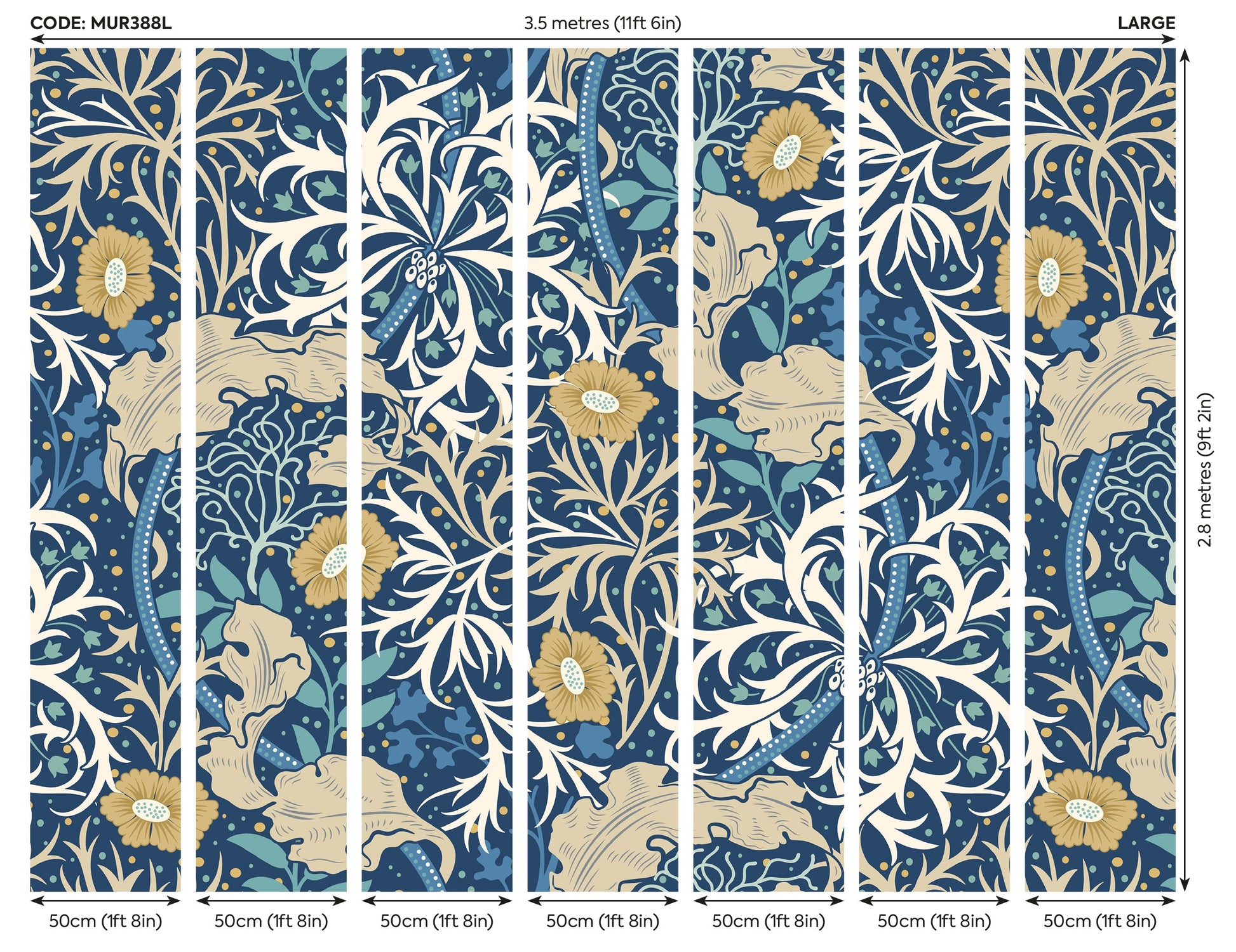 The Origin Murals Trailing Seaweed Garden Ink And Petrol wallpaper captivates with its illustrated design, drawing inspiration from the artistry of John Dearle and the enduring legacy of William Morris. Its sweeping, criss-cross patterns evoke the tranquil motion of water gardens, adding both visual interest and a touch of artistic history to any interior.
