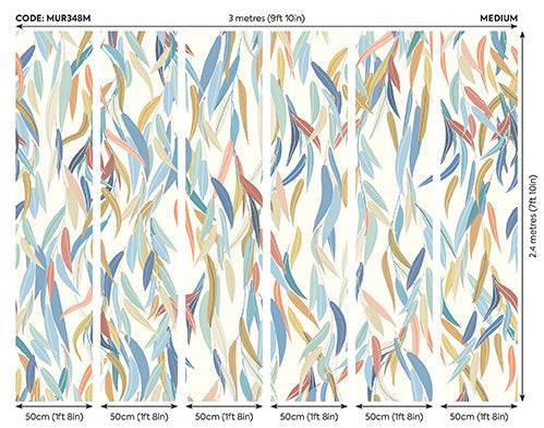 The Origin Murals Willow Leaves Denim Blue Apricot wallpaper is designed to transform any room, introducing serene movement as the natural leaf shapes appear to drift effortlessly towards the floor. With its subtle interplay of colours and gentle patterns, this wallpaper from Origin Murals is ideal for creating a sense of harmony and understated elegance in living rooms, bedrooms, or feature walls.
