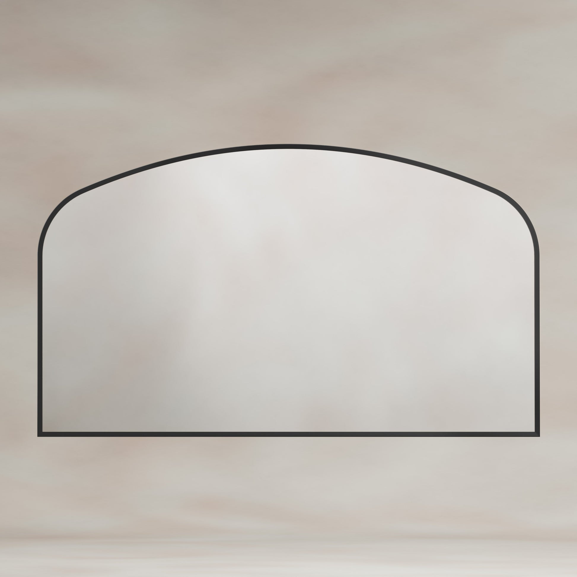 The image showcases a striking arched mirror, its bold matt black frame outlining a graceful curve reminiscent of timeless architectural elegance. The smooth, uninterrupted lines of the arch create a dramatic focal point, while the deep black finish provides a contemporary contrast against any backdrop. Its impressive silhouette captures natural light beautifully, enhancing the sense of space and style in any setting.