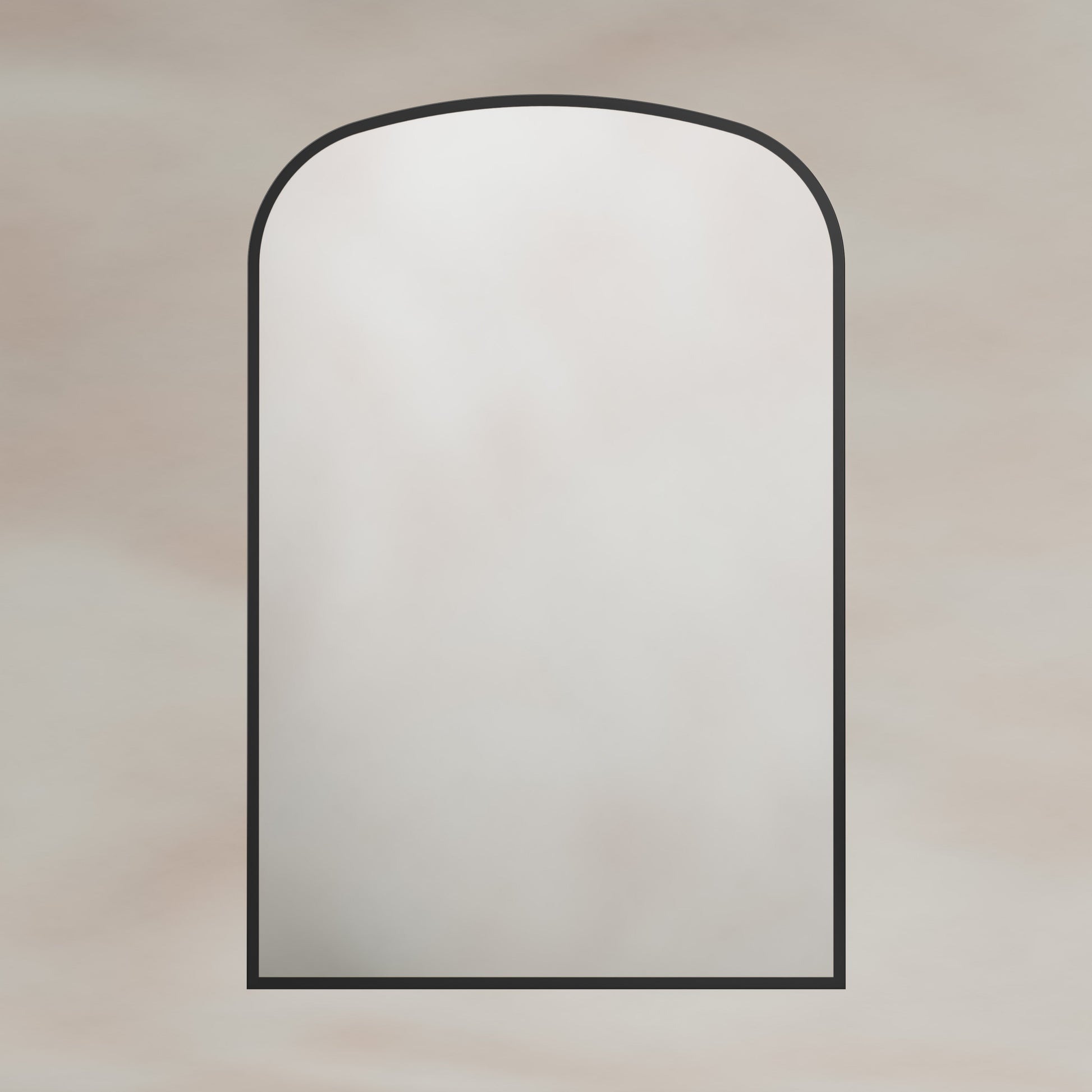 The product image showcases a stately arched mirror with a dramatic yet understated matt black finish, reflecting an elegant curvature that instantly catches the eye. The frame’s bold silhouette contrasts beautifully with the crisp mirrored surface, creating a statement piece that draws light and visual interest into any room. The arch detail imparts a sense of architectural finesse, enhancing classic and contemporary décor alike.