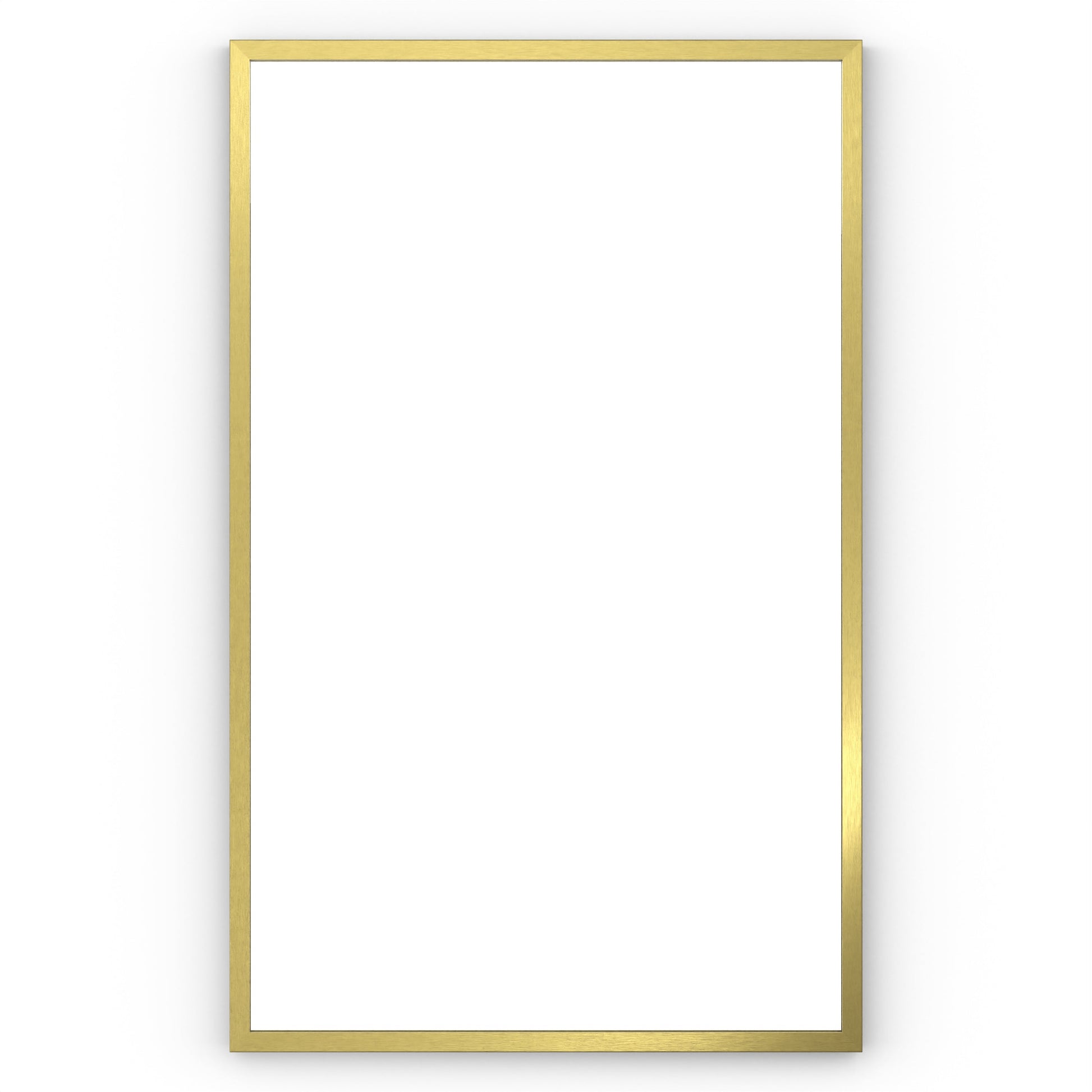 In the image, the mirror exudes refinement and modern allure. The smooth frame showcases a rich brushed brass tone, radiating warmth that delicately complements its bold geometric lines. The reflection is crystal clear, capturing a sense of space and light, making any setting feel more open and inviting. The elegant metallic band frames the glass with precision, adding both substance and flair without overwhelming the room’s aesthetic.
