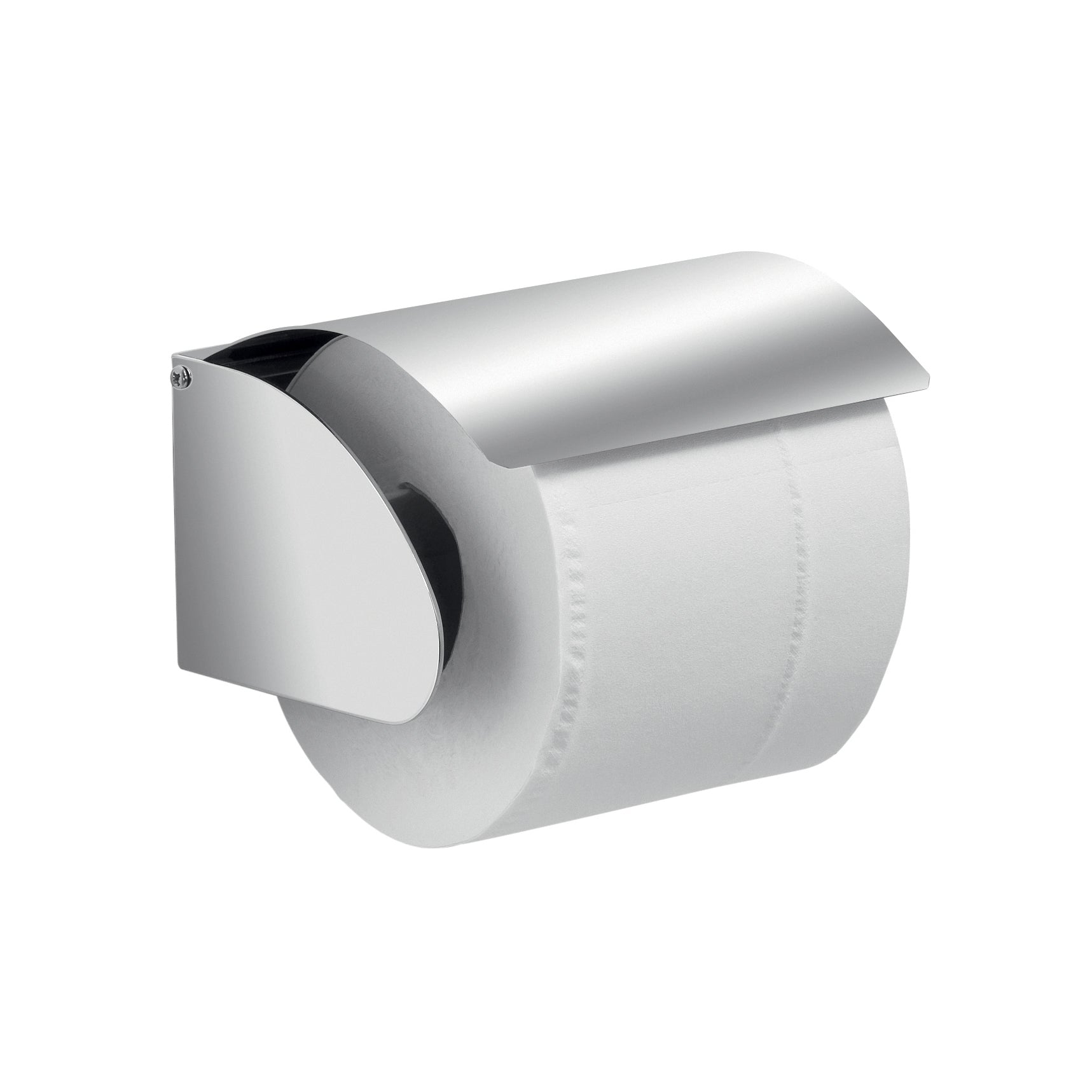 The holder is depicted with a gently rounded, minimalist silhouette that seamlessly complements modern décor. Its brushed stainless steel finish exudes a subtle sheen, echoing a sense of understated elegance. The prominent flap covers the toilet roll neatly, contributing to a tidy and organised bathroom environment, while the concealed fittings ensure the overall appearance remains smooth and streamlined.