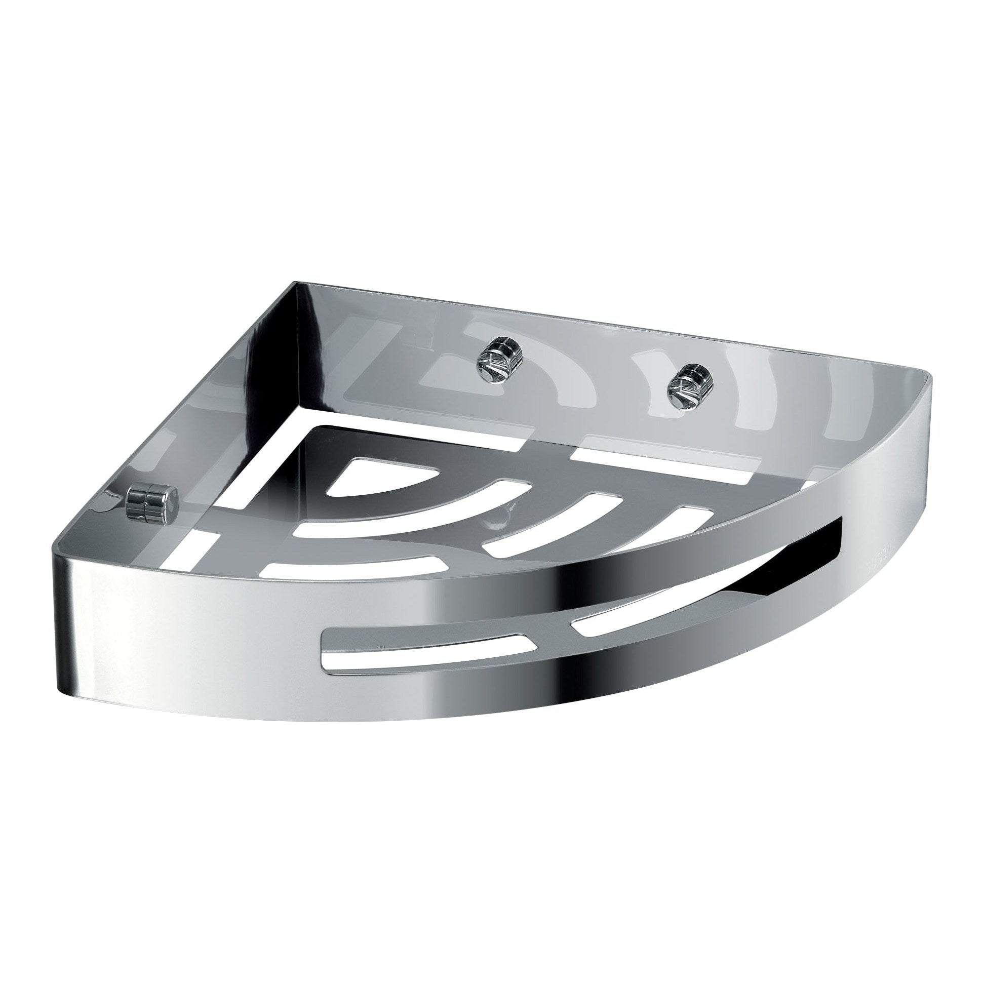 The image showcases a triangular, open-corner basket designed to maximise your shower space while adding a sophisticated highlight to your bathroom décor. The lustrous chrome surface reflects light brilliantly, while the streamlined lines and subtle drainage slots create an impression of understated opulence—ideal for anyone seeking a sleek, uncluttered aesthetic.