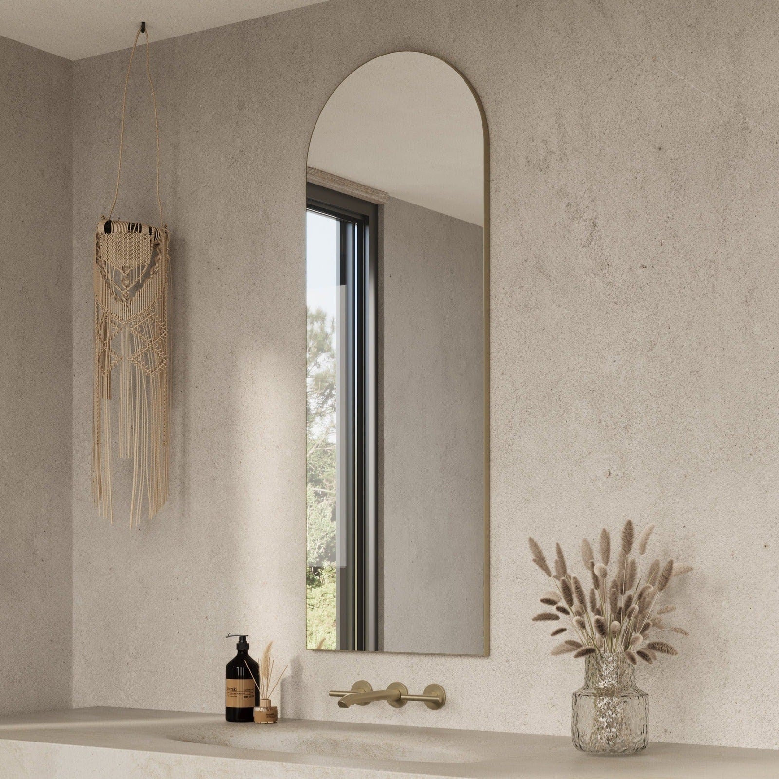 The Origins Living Oslo Arch Mirror 50x140cm Brushed Brass is meticulously designed to integrate seamlessly into bathrooms, hallways, bedrooms, and even commercial spaces, thanks to its striking appearance and adaptable mounting options. Its ability to be fitted in four different orientations ensures flexibility for any room layout, while the inclusion of a premium high-quality mirrored surface and a safety-backed design guarantees lasting durability.