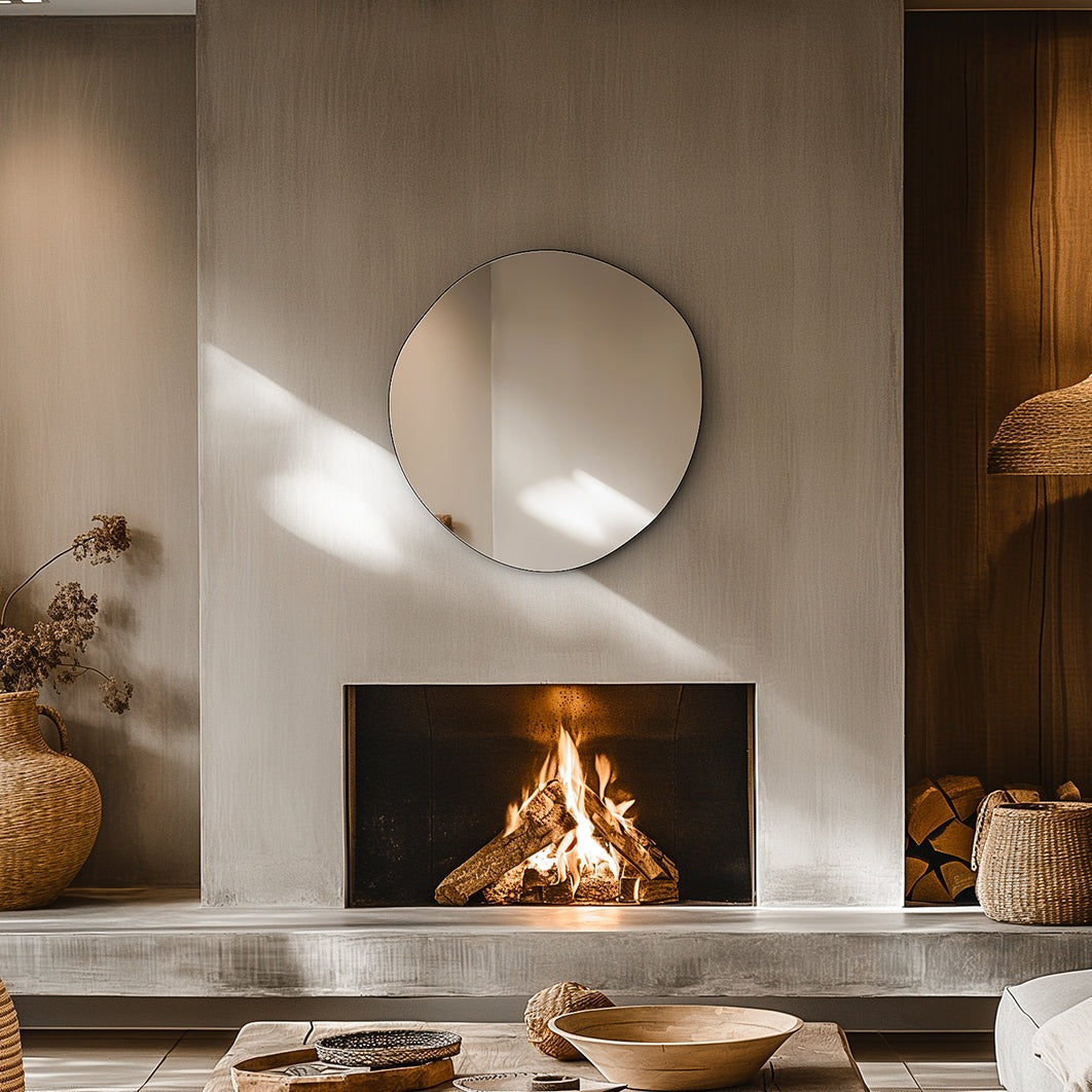 The image showcases an irregular, organic silhouette reminiscent of the natural ebb and flow of water. Its dramatic matt black frame forms a bold contrast against its reflective surface, effortlessly enhancing both minimalist and modern interiors. The unconventional shape softens sharp lines and gives an artistic edge to bathrooms or living spaces.
