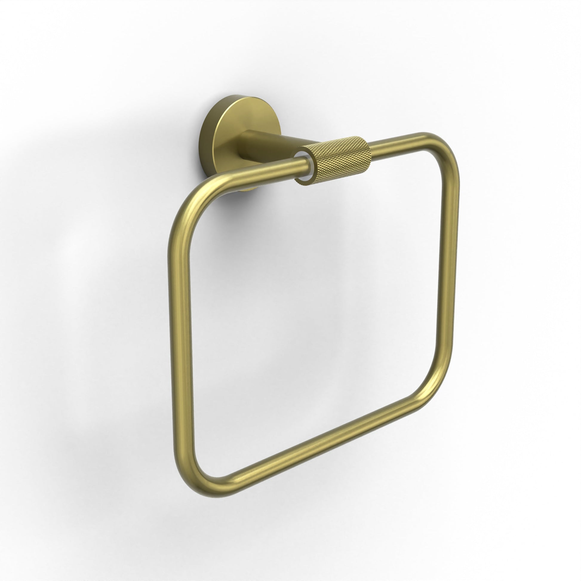 In its striking presentation, the Turner Towel Ring features a sleek circular silhouette, finished in a sophisticated brushed brass that catches the light with a subtle, inviting glow. The central ring is set against a geometric mounting plate, giving a sense of balance and modern elegance. The tactile knurled detailing along the edge adds visual interest, creating a harmonious contrast with the smoothness of the rest of the piece. This accessory adds just the right hint of luxury, whilst keeping your space uncluttered and stylish.