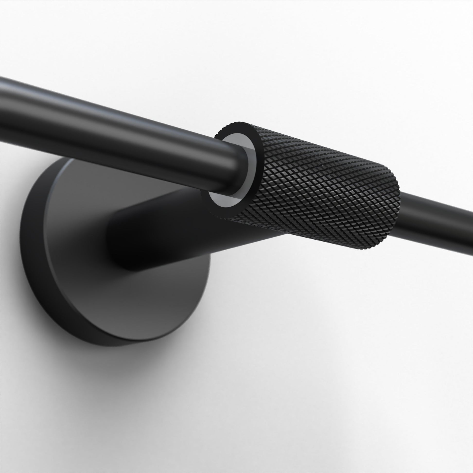 The product image beautifully showcases the Turner Towel Ring’s bold matt black finish that stands out strikingly against a variety of bathroom settings. Its cool, minimalist square form accentuates the modern aesthetic, while the subtle knurled detailing lends an industrial edge and a tactile experience that is both stylish and practical. Discreet mounting ensures that the ring appears to float seamlessly on the wall, maintaining an uncluttered, refined ambience.