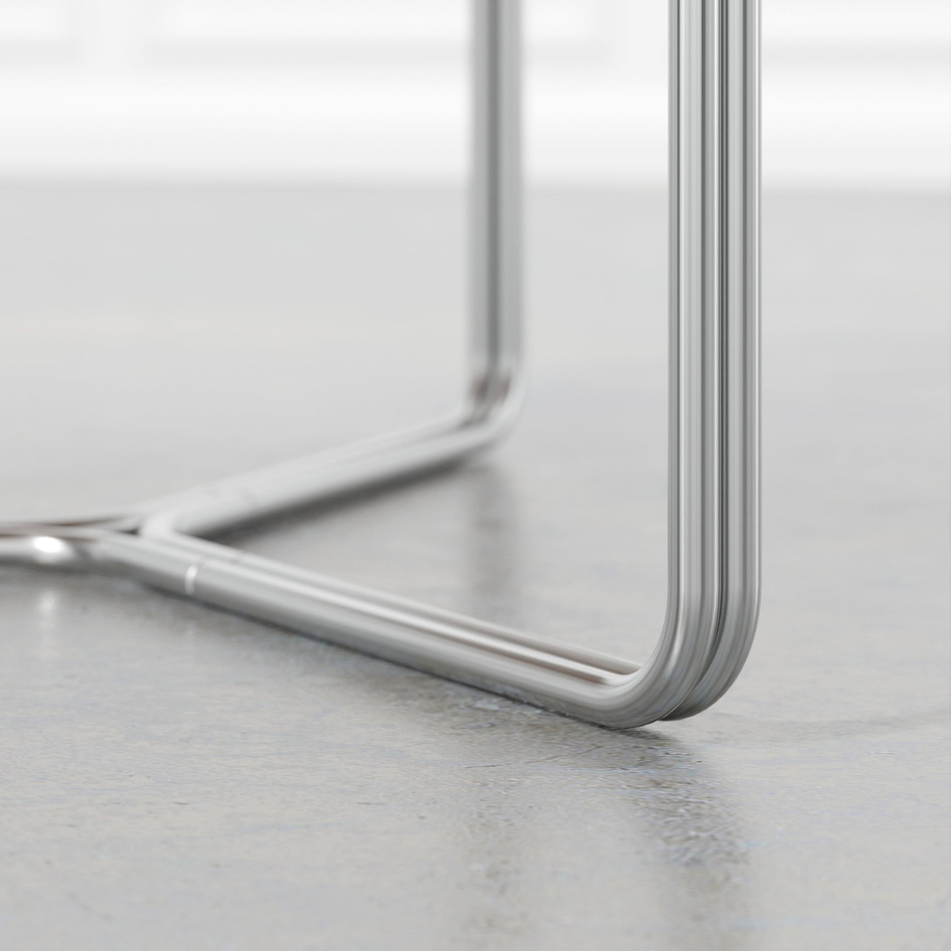 - Satin-brushed stainless steel legs for a sophisticated finish